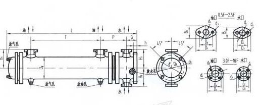 列管式冷卻器的熱介質(zhì)是由筒體上的接管進(jìn)口,順序經(jīng)各折流通道,曲折地流至接管出口。而冷卻介質(zhì)則采用雙管程流動,即冷卻介質(zhì)由進(jìn)水口經(jīng)分水蓋進(jìn)入一半冷卻管之后,再從回水蓋流入另一半冷卻管進(jìn)入另一側(cè)分水蓋及出水管。冷卻器介質(zhì)在雙管程流過程中,吸收熱介質(zhì)放出的余熱由出水口排出,使工作介質(zhì)保持額定的工作溫度。